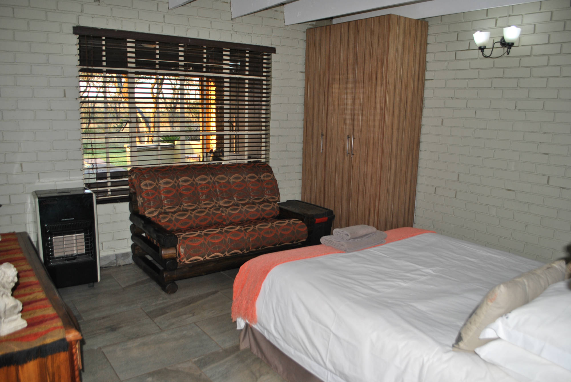 @Wild Game Lodge is a tranquil rustic self-catering getaway that is located on a 200 hectare game farm, conveniently located 3km of the N12 and only 35km from Klerksdorp. This self-catering unit is ideal for tourists and guests enjoining the great outdoors. The lodge is located nearby wedding venues such as Bona-Bona and Grootbosch as an alternative for accomodation.
