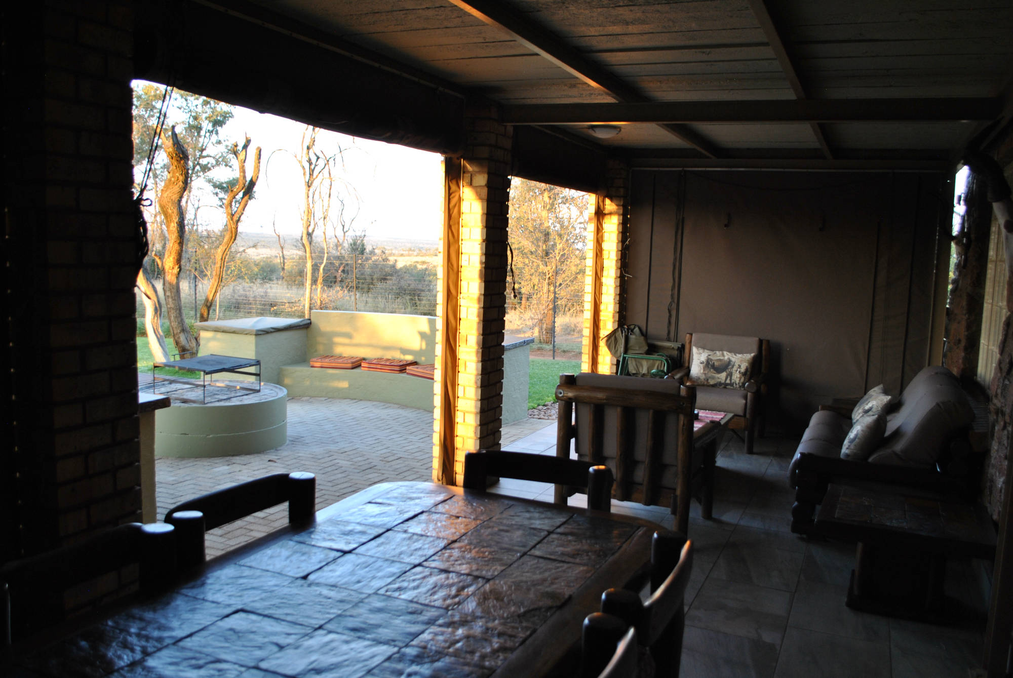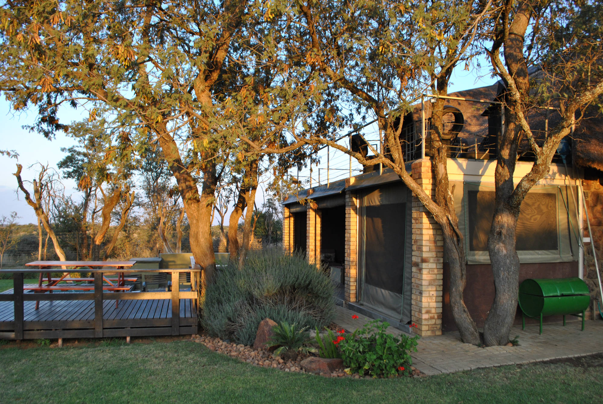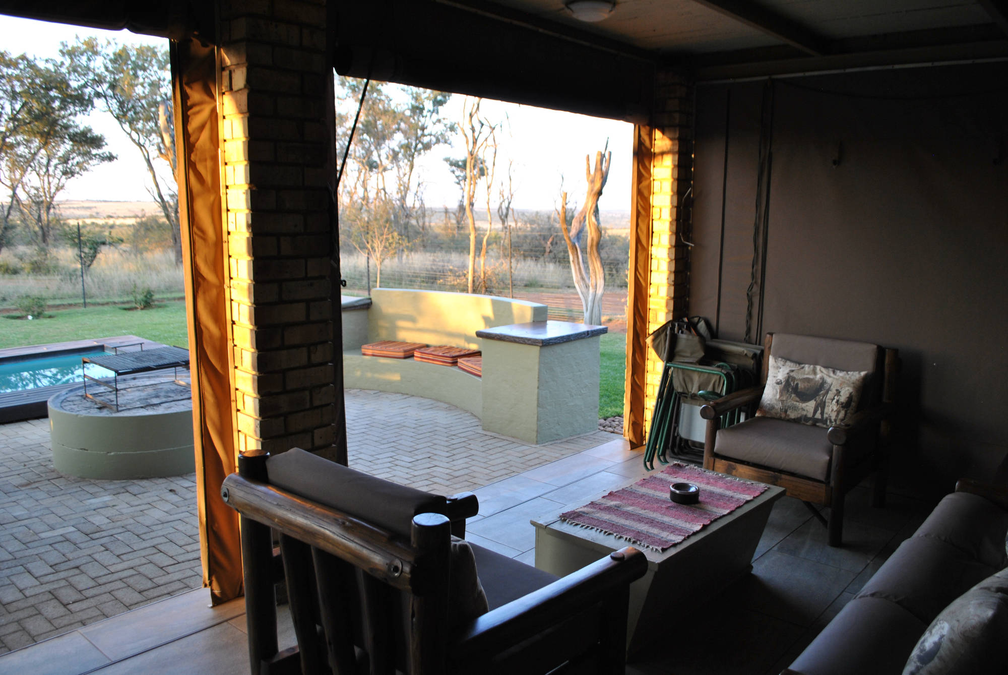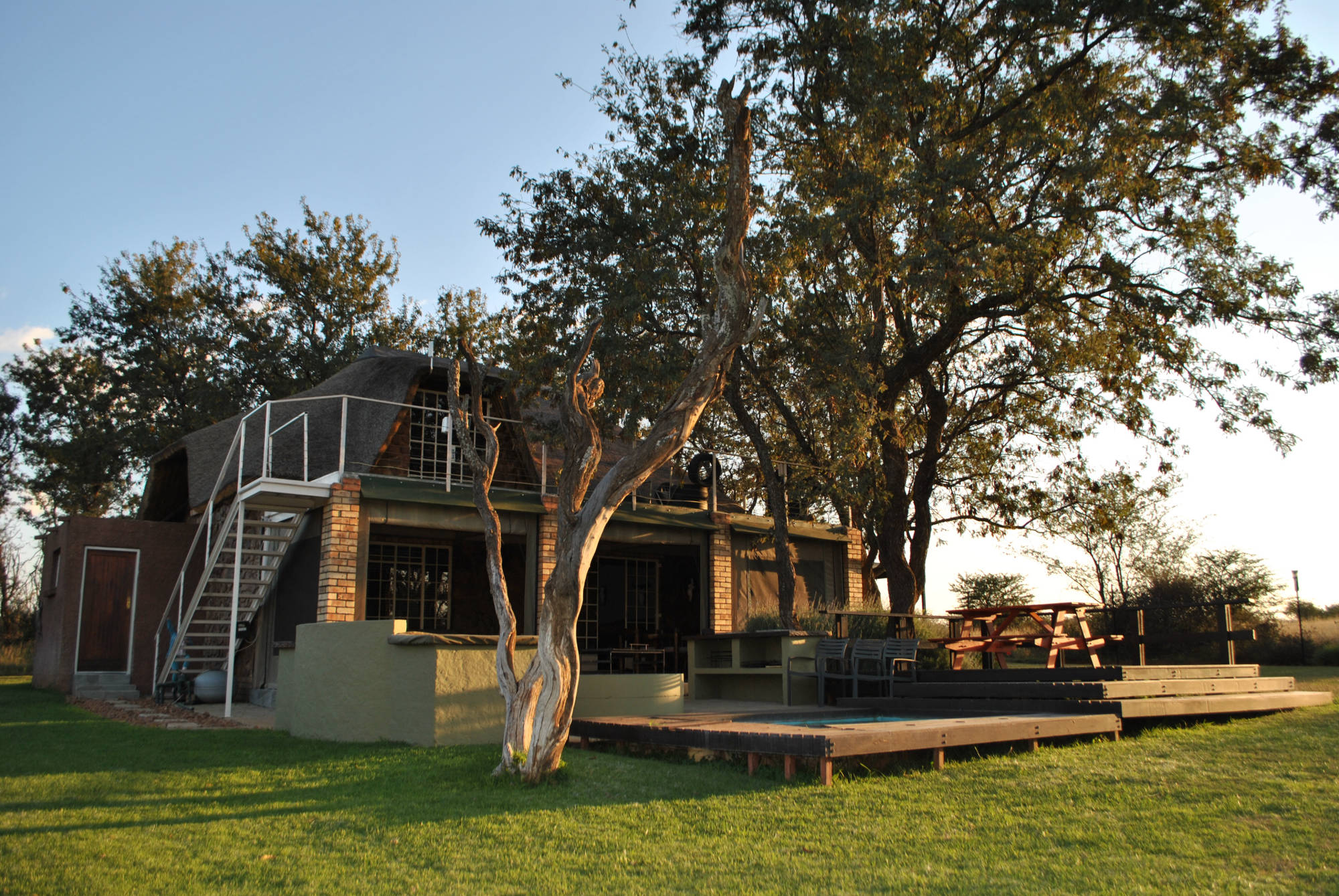 @Wild Game Lodge is a tranquil rustic self-catering getaway that is located on a 200 hectare game farm, conveniently located 3km of the N12 and only 35km from Klerksdorp. This self-catering unit is ideal for tourists and guests enjoining the great outdoors. The lodge is located nearby wedding venues such as Bona-Bona and Grootbosch as an alternative for accomodation.